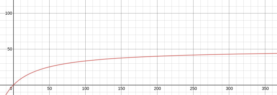 In the original Amdahls graph, the X-axis was logarithmic. If we plot the entire graph in base 10, it is apparent how the law of diminishing returns plays a role in parallelization. If I was obtaining a computer to run this program, I might decide that it is best to stop around 50 cores. Although this would only yield a 25x performance increase, you would need thousands of more threads to get closer to the theoretical 50x performance increase.